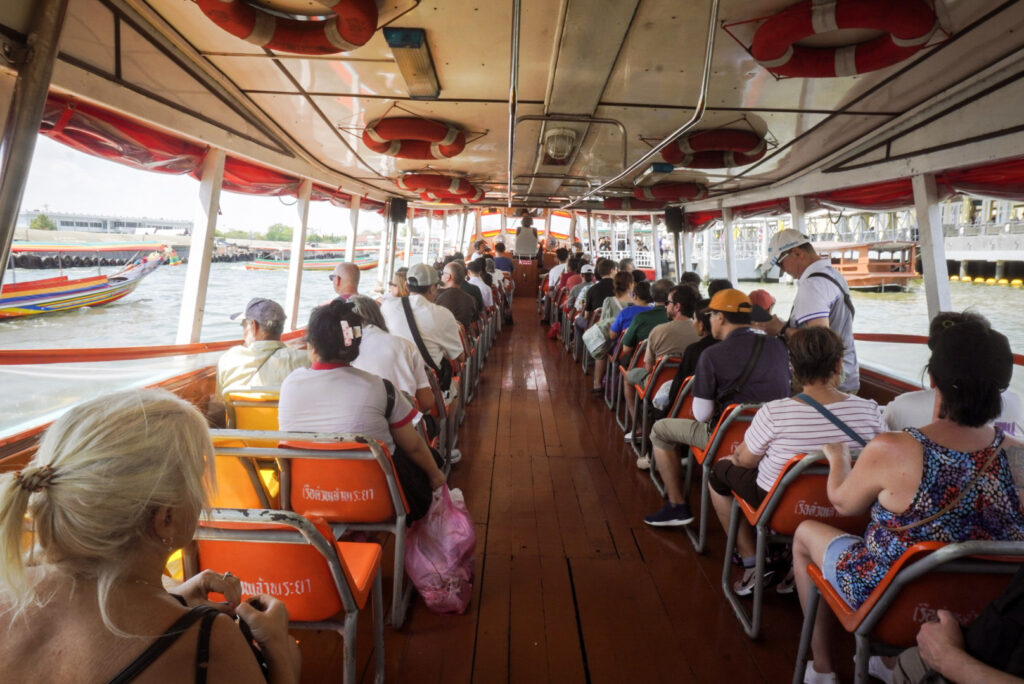 We stayed near Icon Siam, so we chose to take a boat to Wat Pho to enjoy the scenery along both banks of the Chao Phraya River. The fare was very cheap, only eight baht per person, the same price for both Thais and foreigners.