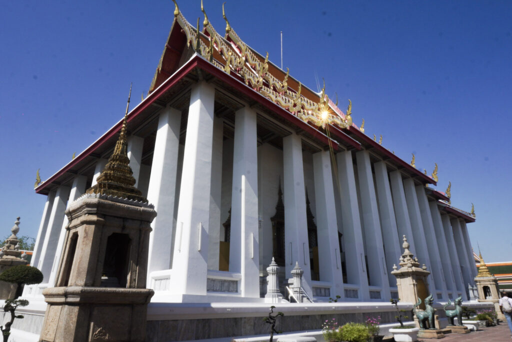 Around 6 PM, Wat Pho will light up the entire temple, and it looks absolutely beautiful. On the other side of Wat Pho, there is Wat Arun, where you can also enjoy a stunning sunset. If you choose a good restaurant, you’ll be able to see the views of both places at once.